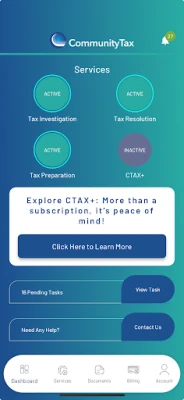 Community Tax, a trusted for-profit organization specializing in resolving back tax issues and tax preparation, introduces the Community Tax app—an exclusive, FREE tool crafted specifically for our valued clients. Seamlessly collaborate with your dedicated team using your mobile device or web browser, anywhere, anytime!
