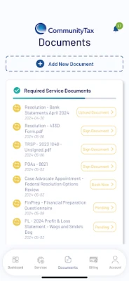 Key Features: Real-time service status updates To-do lists and task management Direct document upload In-app document signing Contact requests View payment schedule Manage payment methods Level up your service experience with the user-friendly and client focused Community Tax App!