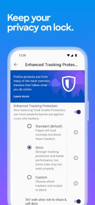 • Enhanced tracking protection — Choose the “strict” setting as an incognito browser and get even more privacy protections with an ad blocker.