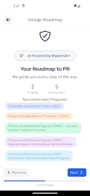 • Instant eligibility checks for 20+ PR pathways, driven by our proprietary Maestro AI—no spreadsheets or jargon.