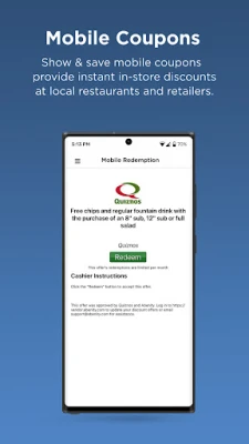 Show & save mobile coupons provide instant in-store discounts at nearby restaurants