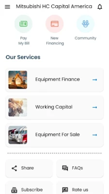 At Mitsubishi HC Capital we are committed to Service First. We are proud to offer product to our customers using the latest tools and technology and delivering industry-leading service and experience. The Mobile App will help you learn more about the many great products offered by Mitsubishi HC Capital. The Mobile App will allow you to browse out current inventory and apply for financing. Withing the app, out existing customers can access account information, pay their bill, and view payment history. Location and time of day are things of the past; having complete account access is at your fingertips whenever and wherever you are.