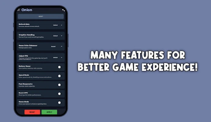Onion Tool is a free all-in-one utility designed to enhance your Gaming experience. With it, you can unlock higher graphics settings, fix lag, and enjoy smoother gameplay. Whether you're using a low-end or high-end device, Onion Tool helps you get the best possible performance from your game.