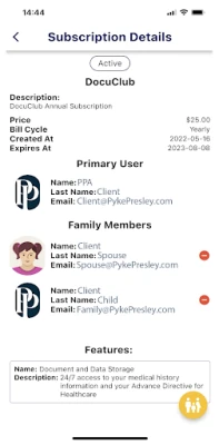 In an emergency, you are rushed to the hospital. Will the doctors and medical staff have access to your Advanced Directive for Health Care? Or your relevant medical history and details? With DocuClub, you will have the peace of mind of know that your physicians and family members you designate will have 24/7 access to the answers they need. Will the Pyke, Presley & Associates App, you can fully manage your DocuClub membership: