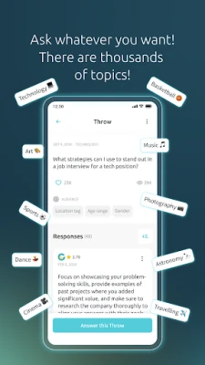Ask questions, get answers! Throw™ is the ONLY safe, positive, and fully anonymous Q&A platform to help and be helped. Throw™ is a safe, supportive, and positive way to engage — no hate or negativity is allowed.