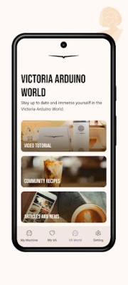 The renewed version app gives you the possibility to save and share recipes from the Cloud. Through the app, you can create and share recipes with espresso or pure brew and create recipes of coffee or tea-based cocktails and mocktails. The brand-new section “VA World” contains the latest news and events about Victoria Arduino, together with useful video tutorials and community recipes. “My VA” is your personal profile where you can save your favorite content from the community and upload your recipes and pictures.