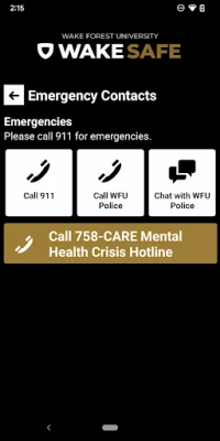 - Chat with WFU Police: Communicate live with safety staff at Wake Forest University via chat.